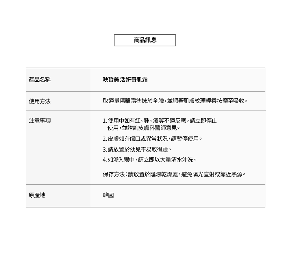 含有多種植物萃取和有效成分,低刺激高保濕的乳霜質地,能深入肌底強化緊實度與保水力,喚醒健康光采。