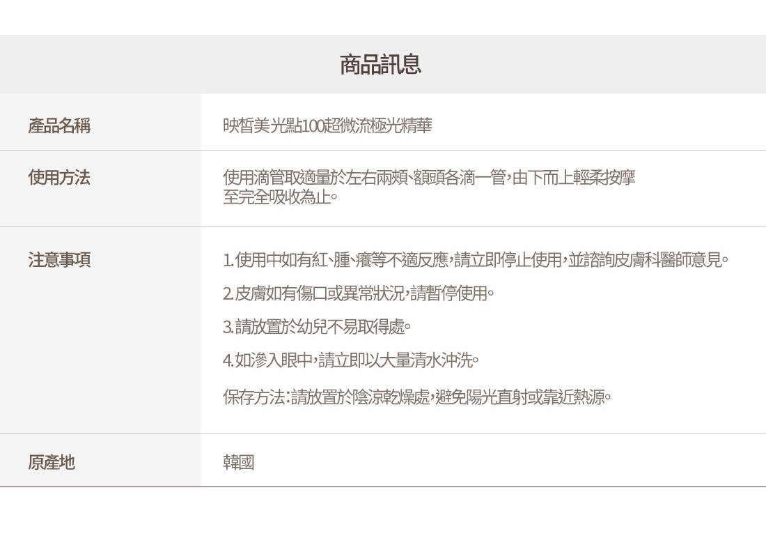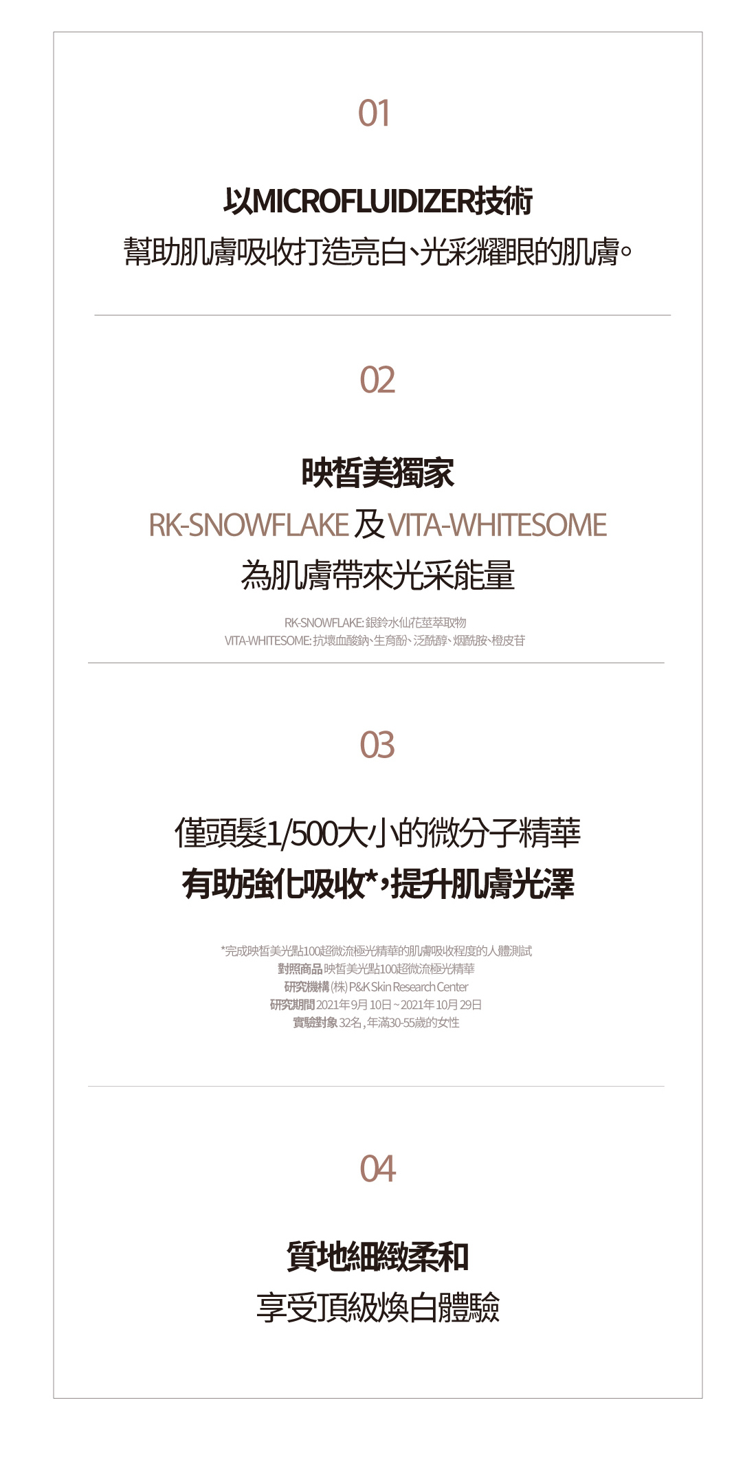 微分子精華親膚效果極佳,能滲入肌膚底層,打造亮白細嫩的膚質。